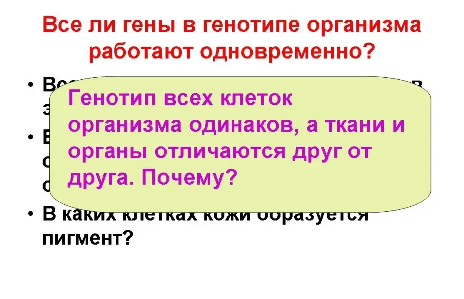 2. Генотип это множество генов. Все ли гены работают одновременно?