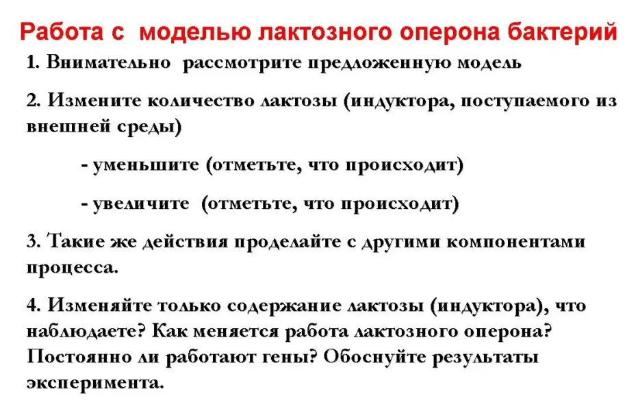 - Измените количество лактозы (индуктора), поступающего из внешней среды.