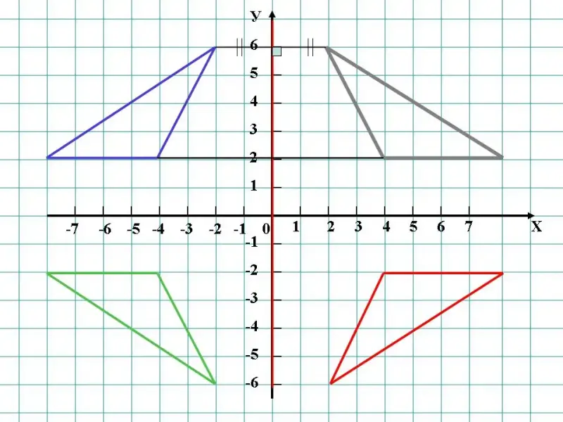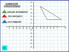 - Постройте синий треугольник симметричный данному, относительно оси ординат.