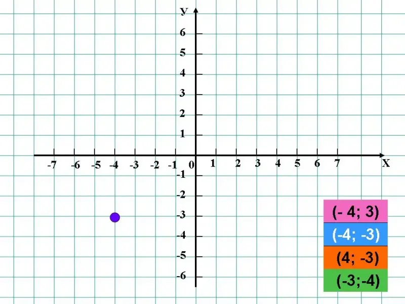 На координатной плоскости вы увидите точку, координату которой нужно выбрать из предложенных вариантов. И по команде «..3» показать карточку такого цвета, который соответствует правильному ответу. Раньше времени карточки не поднимайте, иначе я не буду засчитывать вам ответ и опускайте их по моей команде. Если со всеми заданиями вы справитесь правильно, то получите - звезду.