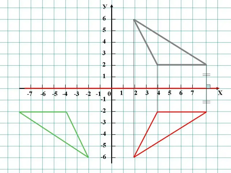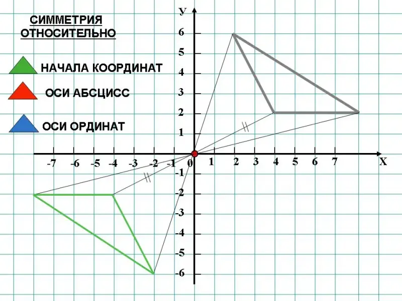 - Постройте зеленый треугольник симметричный данному, относительно начала координат.
