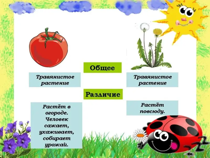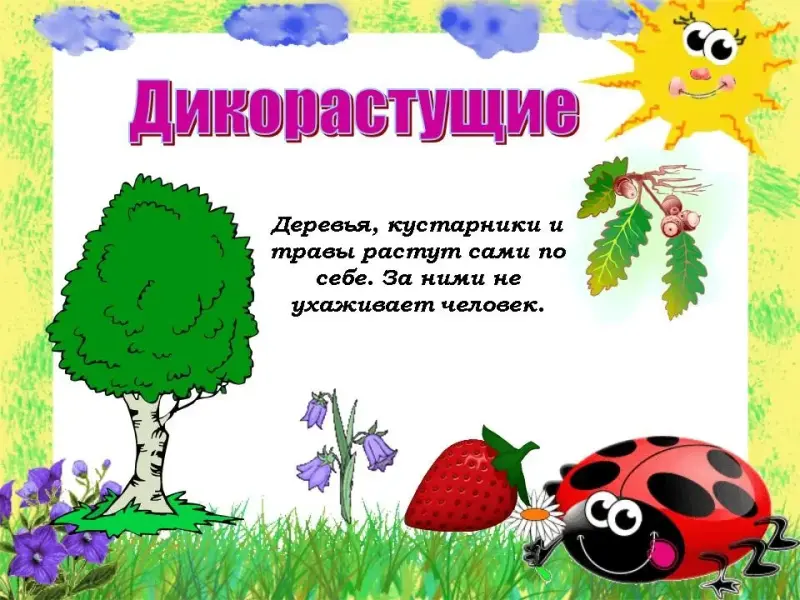 - Назовите все растения, укажите, какие являются дикорастущими.