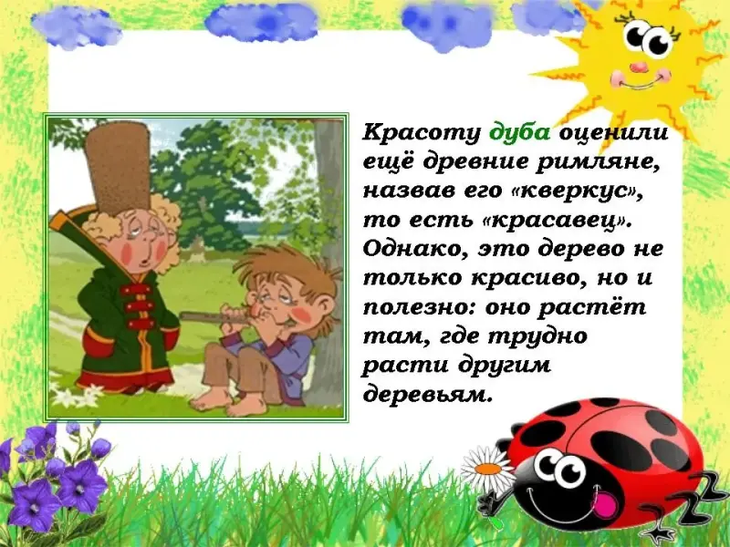 Важной полевой культурой среди злаков является овес. Вкусный и питательный овес легко усваивается и поэтому рекомендован для детского и диетического питания. Это давно оценили англичане, каждое утро завтракающие овсяной кашей. Недаром изготовленные из овсяной крупы хлопья назвали именем древнегреческого героя, отличавшегося недюжинной силой, - "Геркулес". Кушайте овсяную кашу, и у вас прибавится сил.