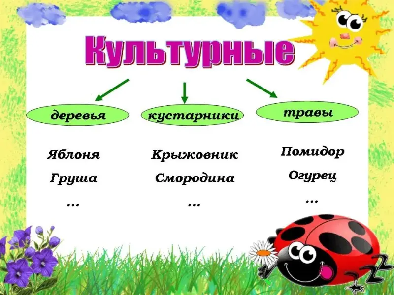 - Значит, на какие группы можно разделить культурные растения?
