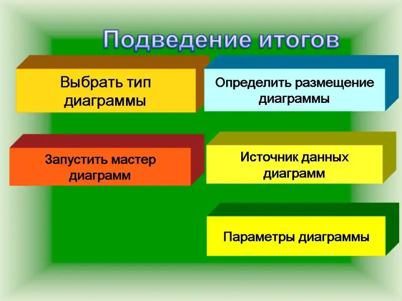 - Давайте сформулируем алгоритм построения диаграмм. Расположите приведенные прямоугольники в правильном порядке.