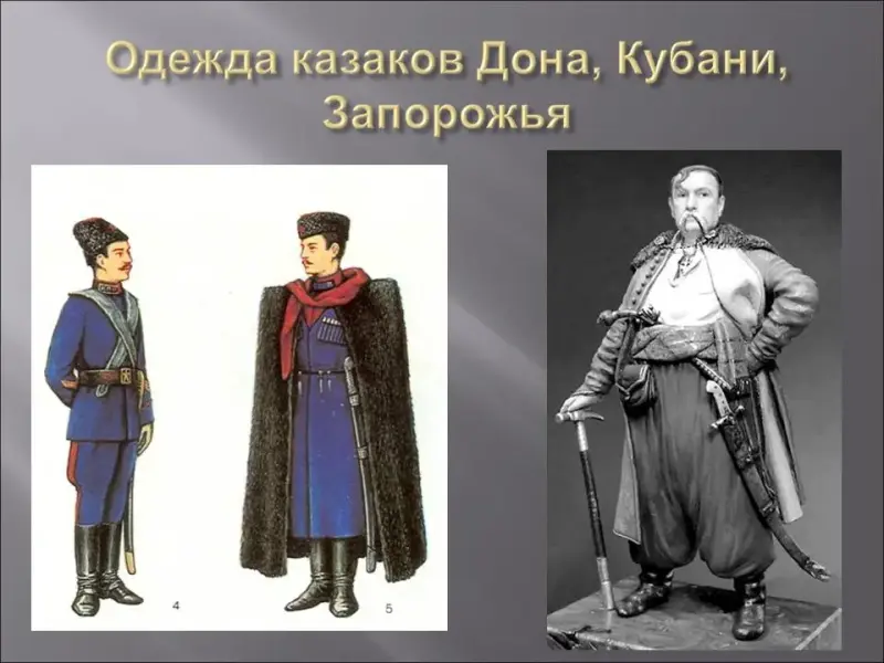 Казак прежде всего воин, с чем и связан обычай носить серьги, но такой чести удостаивался не каждый. Серьга в левом ухе означала, что он один сын у матери, в правом - последний мужчина в роду, а если в обеих - единственный ребенок у родителей. Как правило, в походах таких казаков, следуя неписаным правилам, старались оберегать, но смерти все же, не всегда удавалось избежать. Когда в мирное время умирал последний казак в роду, его шашку ломали и клали в гроб. Обычно шашка передавалась от отца к сыну и далее. Обязательно за гробом вели коня под седлом - боевого друга умершего.