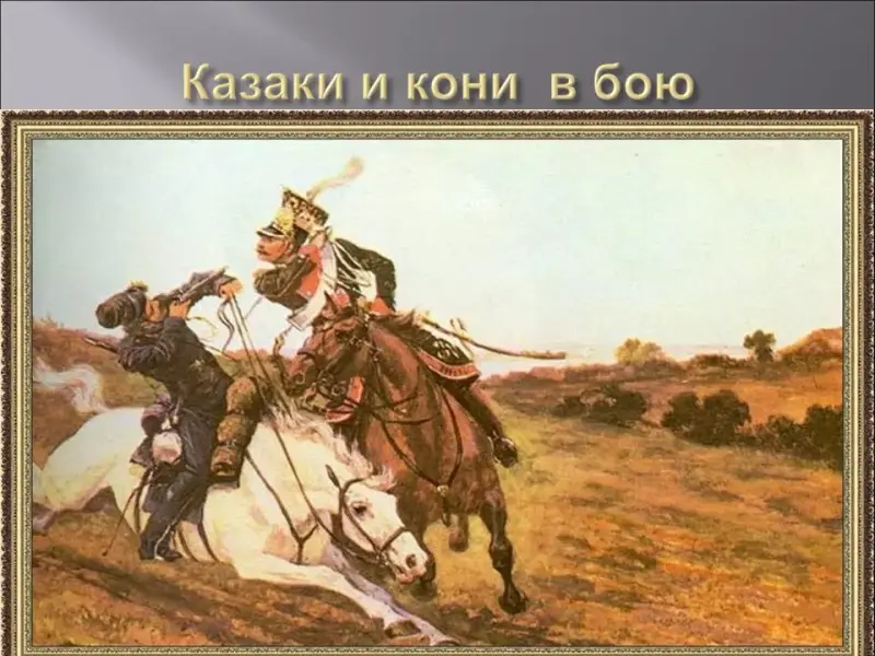 Казаки водили породистых коней, за жеребятами ухаживали, как за детьми. Поэтому такой конь, вырастая, платил хозяину преданностью и любовью: не давался в руки другим, ходил за хозяином. В сабельном бою такой приученный конь лягал и кусал коня врага. Укрытый в лесу или балке, по свисту хозяина бежал к нему, ложился, знал другие команды, не отходил от убитого или раненого на поле боя. Если хозяин погибал, конь никого не подпускал к себе, тосковал, голодал несколько дней.