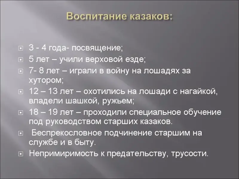 5. Воспитание казаков.