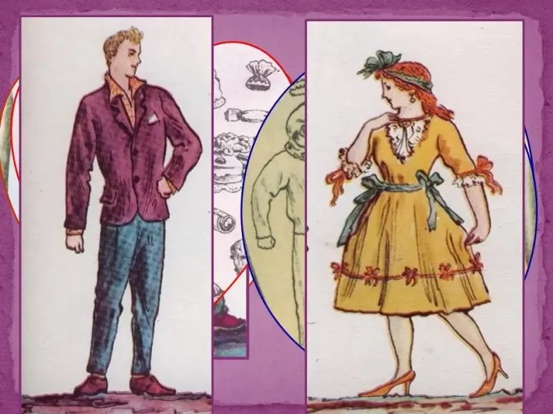 - костюмы для ведущих (они одеты старушками в длинные юбки, передники, чепцы) и для учащихся, занятых в драматизации (в том числе - Шалтай - Болтай, Робин-Боббин, негритята, овечки из стишка про Бо-пип, Тру-ля-ля и Тра-ля-ля и т.д.)
