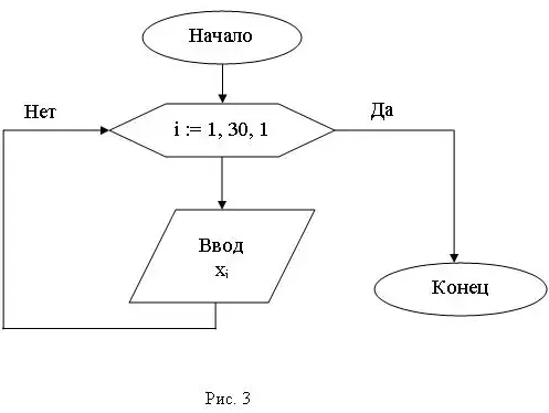 Например, выведем одномерный массив Х1, Х2, …, Хn, состоящий из элементов вещественного типа, используя цикл с параметром (Рисунок 4):