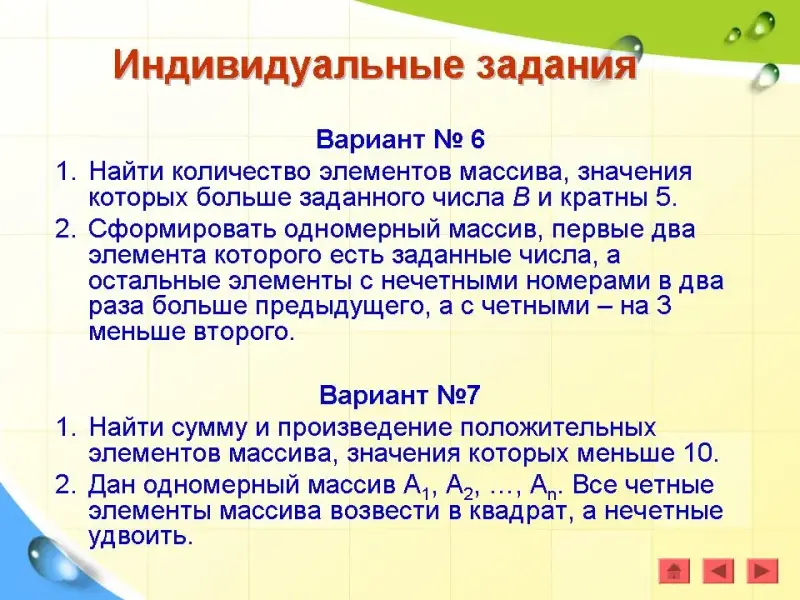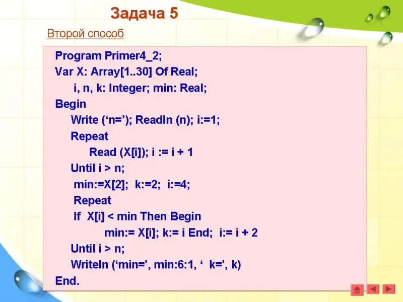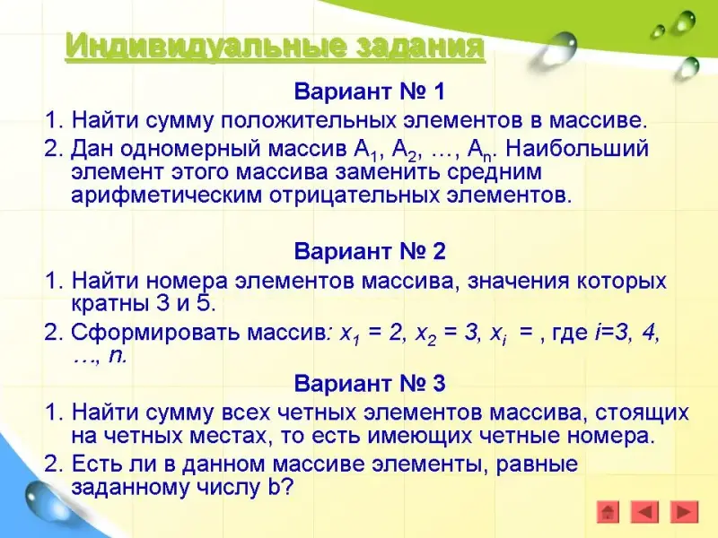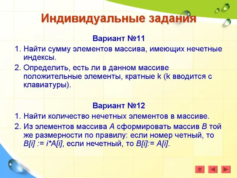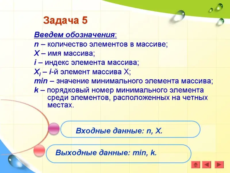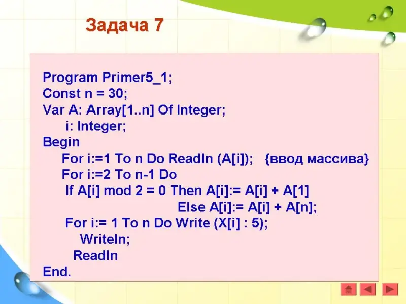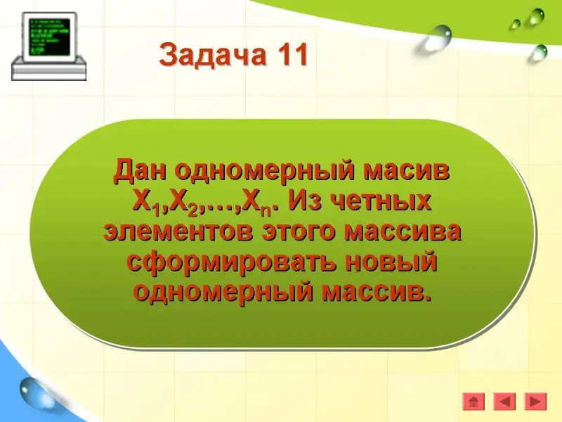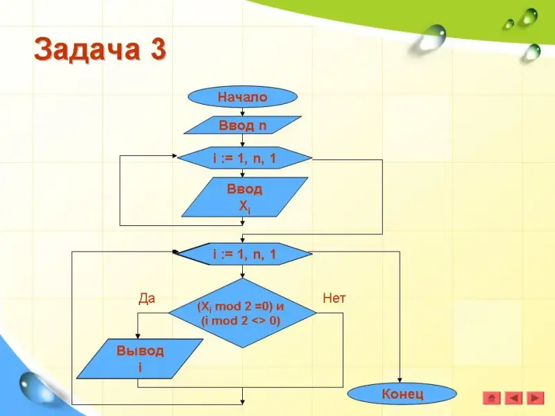 Задача 3. Найти номера четных элементов, стоящих на нечетных местах. (Презентация)