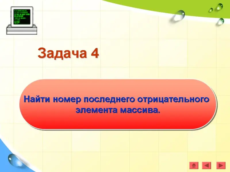 Задача 4. Найти номер последнего отрицательного элемента массива.