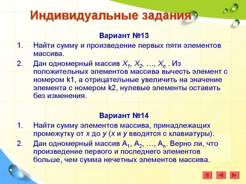 - Х1, Х2, …, Хn - одномерный массив, состоящий из n элементов;