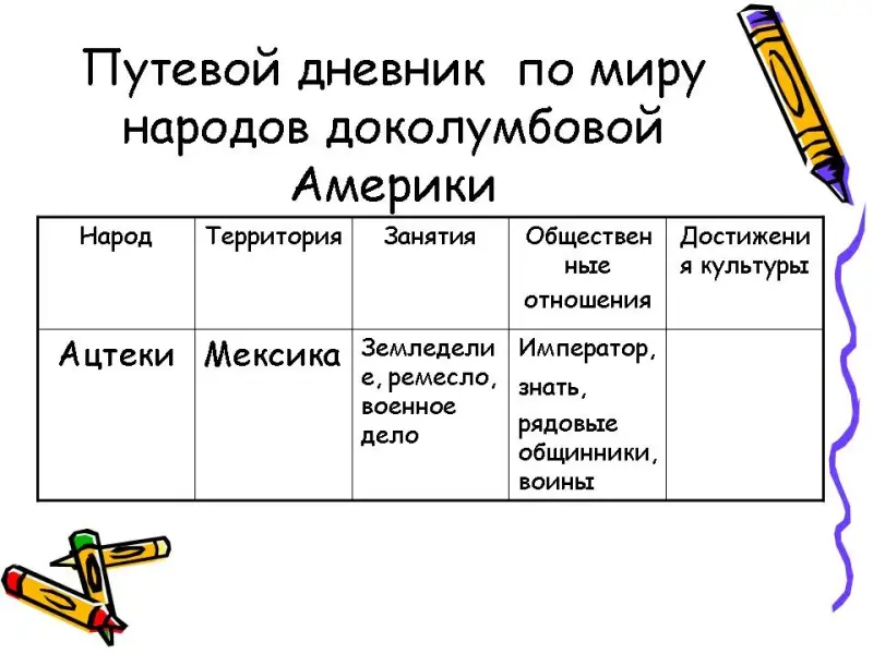 - Мы с вами сейчас были очевидцами событий племени ацтеков и давайте еще раз обратимся к истории индейского племени майя и обратим свой взгляд на наш волшебный экран и начинаем заполнять наш путевой дневник (показ слайдов № ______).