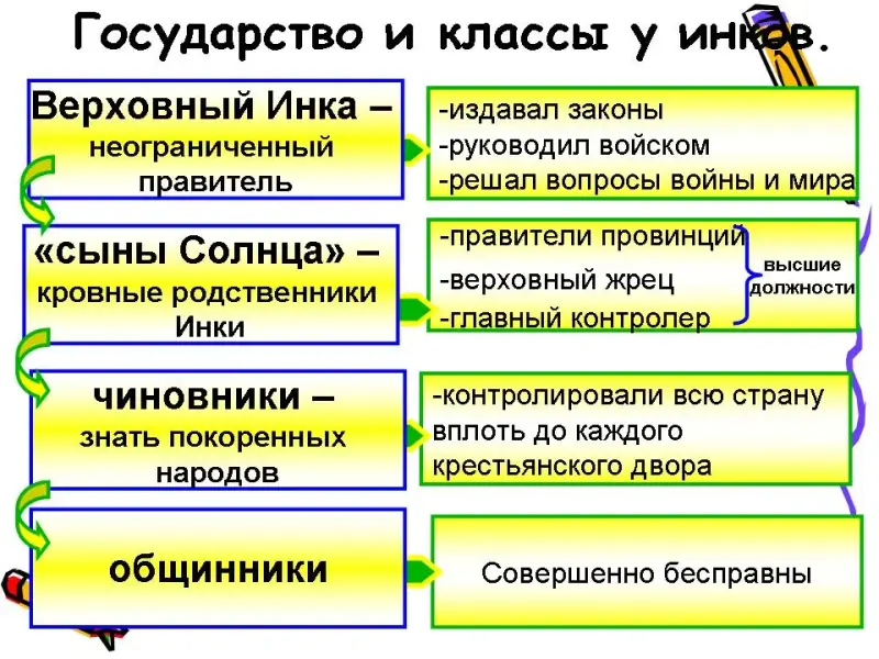 - описывать общее и различное в общественных порядках майя, ацтеков, инков;