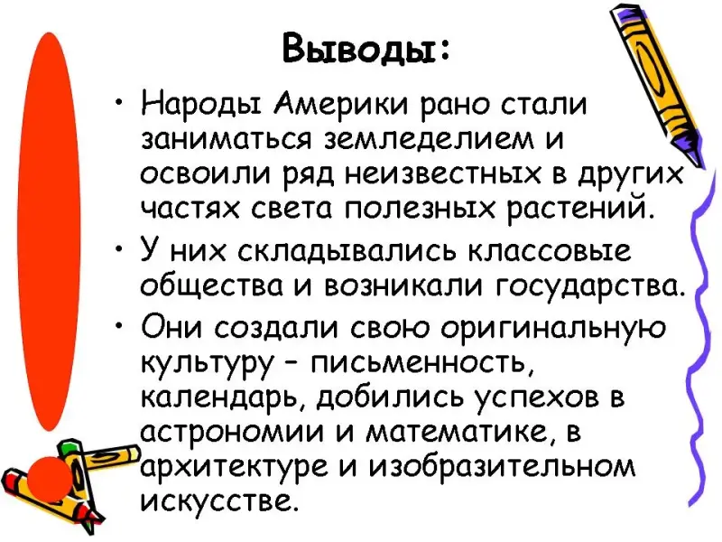 Выяснить внесли ли народы и государства доколумбовой Америки свой неоценимый вклад в историю человечества??? И в чем это выражалось? Обосновать свою точку зрения («да» почему? или «нет» почему?) Итоги будем подводить в конце урока.
