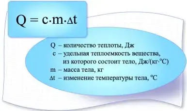 Q - количество теплоты, необходимое для нагревания тела или выделяемое им при охлаждении.