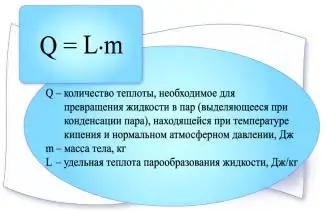 | Удельная теплота парообразования | L |