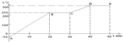 1. Сколько времени нагревалось вещество от - 32°С до температуры плавления?