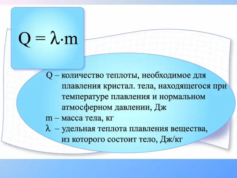| Удельная теплота плавления | Дж/кг |