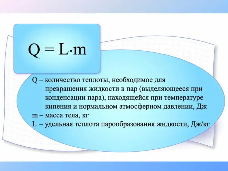 | Удельная теплота парообразования | Дж/кг |