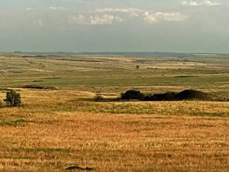 Степь выглядит безжизненной, на ней только одна сухая трава. Кажется, что на земле сплошным слоем лежит старое сено.