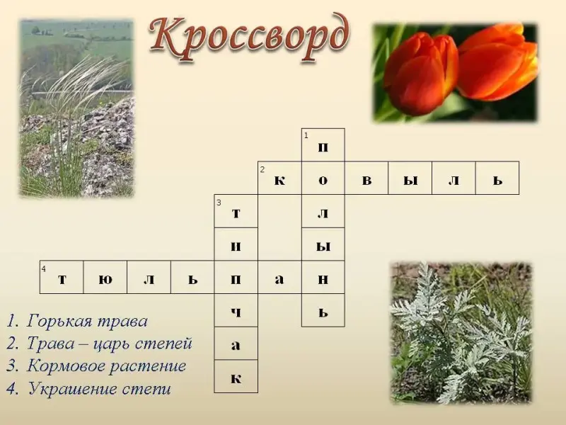 - В какое время года степь особенно прекрасна? Почему? (Особенно красива степь весной, когда сойдет снег. В это время зеленая степь покрыта разноцветными огоньками тюльпанов, ирисов, гиацинтов.)
