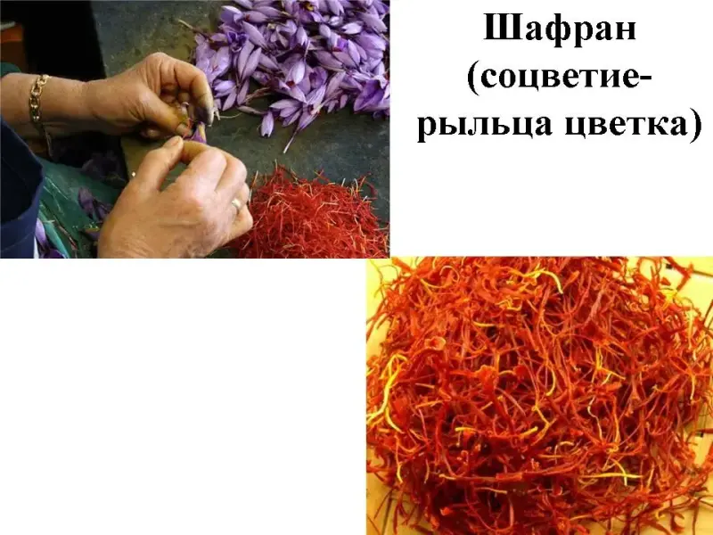 7. Шафран. Высушенные рыльца цветков шафрана посевного используются как пищевой краситель оранжевого цвета.