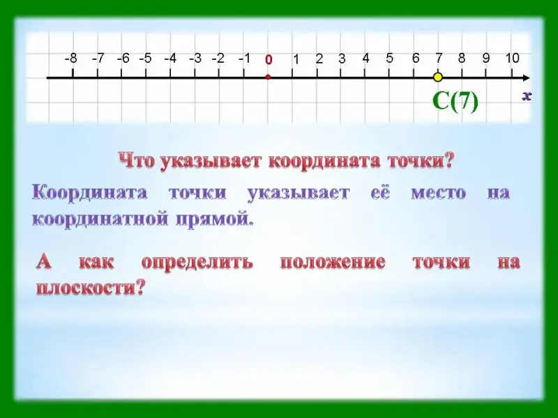 - Формировать понятие координаты точки.