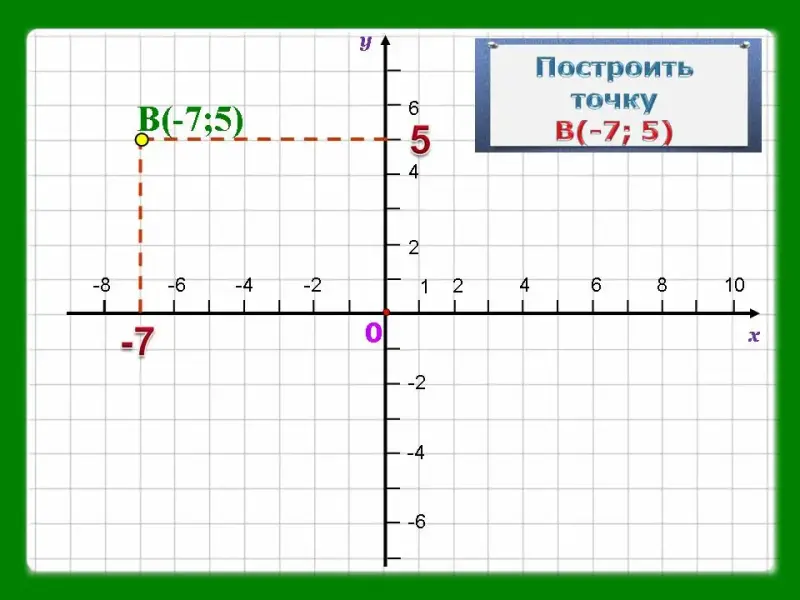 Слайд 11. На данном слайде рассматривается как построить точку В(-7; 5).
