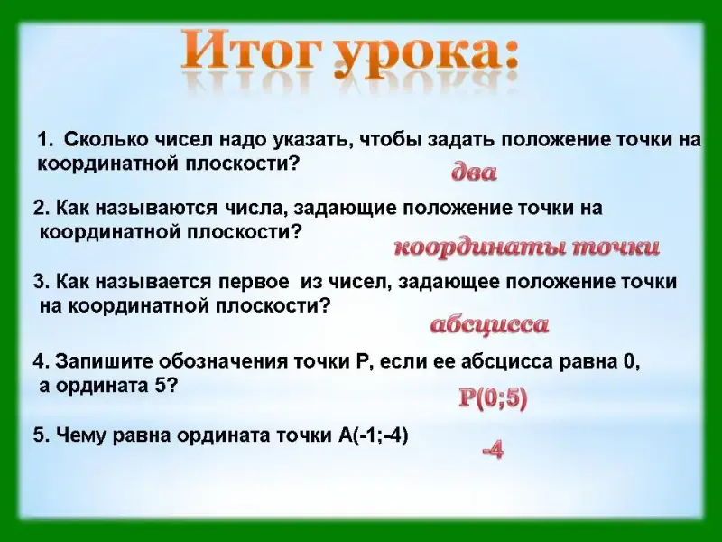 - Как называются числа, задающие положение точки на координатной плоскости?