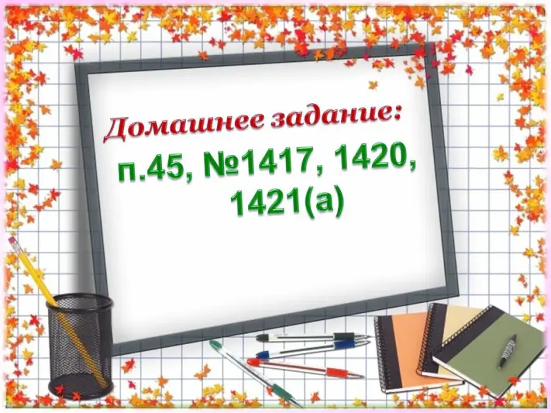 Слайд 20. Домашнее задание: изучить п. 45; п.45, №1417, 1420, 1421(а).