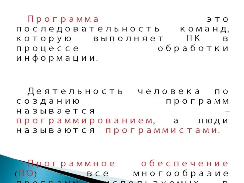 Программа - это последовательность команд, которую выполняет ПК в процессе обработки информации.