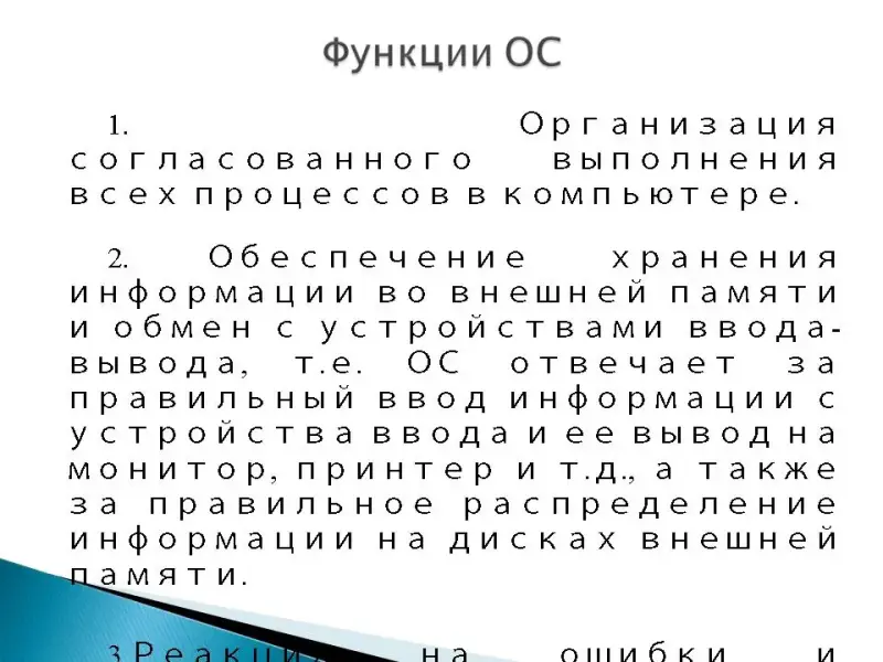2. Обеспечение хранения информации во внешней памяти и обмен с устройствами ввода-вывода, т.е. ОС отвечает за правильный ввод информации с устройства ввода и ее вывод на монитор, принтер и т.д., а также за правильное распределение информации на дисках внешней памяти.