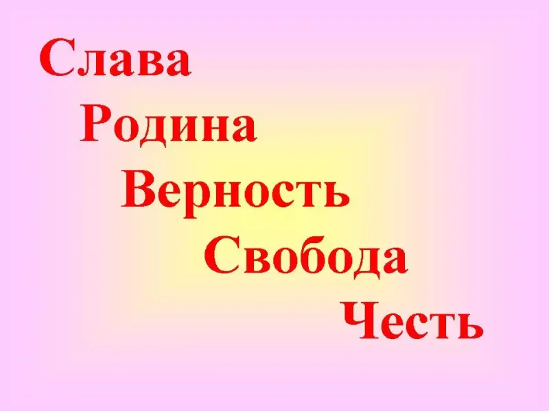 Слава, Родина, Верность, Свобода и Честь. (Слайд)