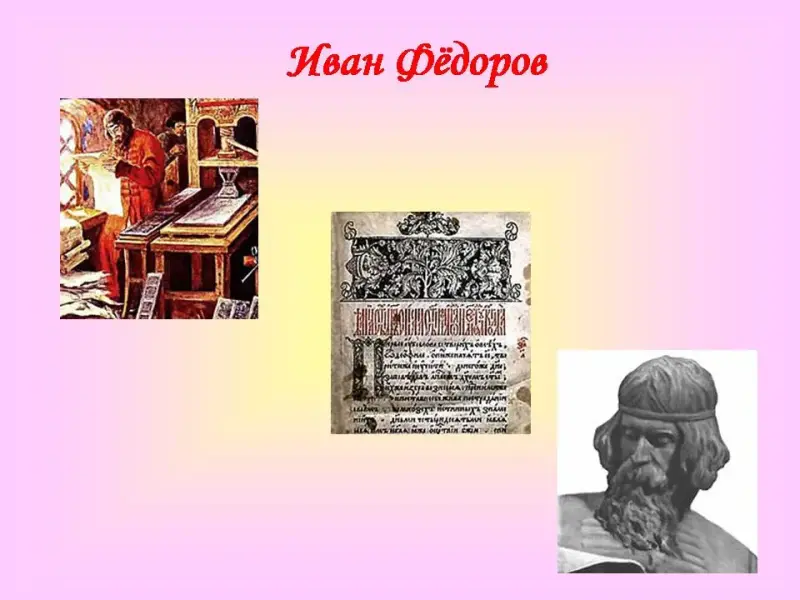 10. Все эти сведения из истории дошли до нас, благодаря тому, что есть книги. Давайте вспомним вместе с Вами, как появилась книга на Руси, кто её впервые напечатал? (Ответы детей.) (Слайд.)