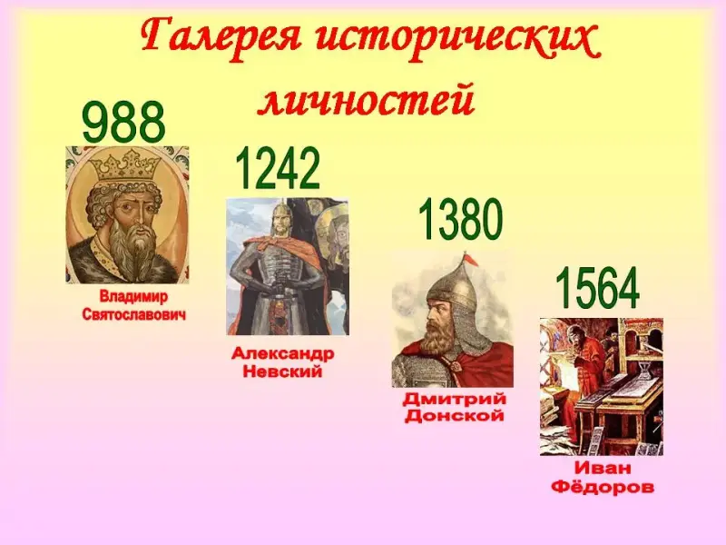 - Внимание на экран. (Слайд) Перед Вами галерея известных личностей, оставивших яркий след в истории России. Вспомнив их имена, мы повторим и некоторые правила русского языка.