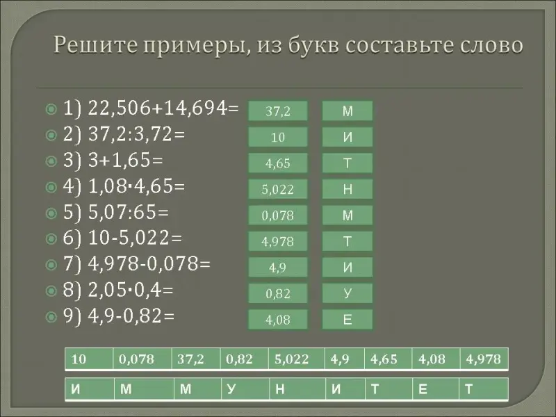 2. Решите примеры и из букв составьте слово (12 мин.)