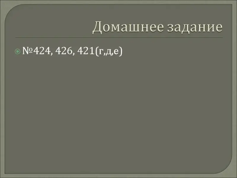 V. Домашнее задание: №424, 426, 421 (г, д, е) (1 мин.)