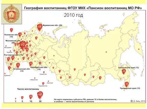 Создание картодиаграммы: «География воспитанниц ФГОУ МКК Пансион воспитанниц МО РФ».