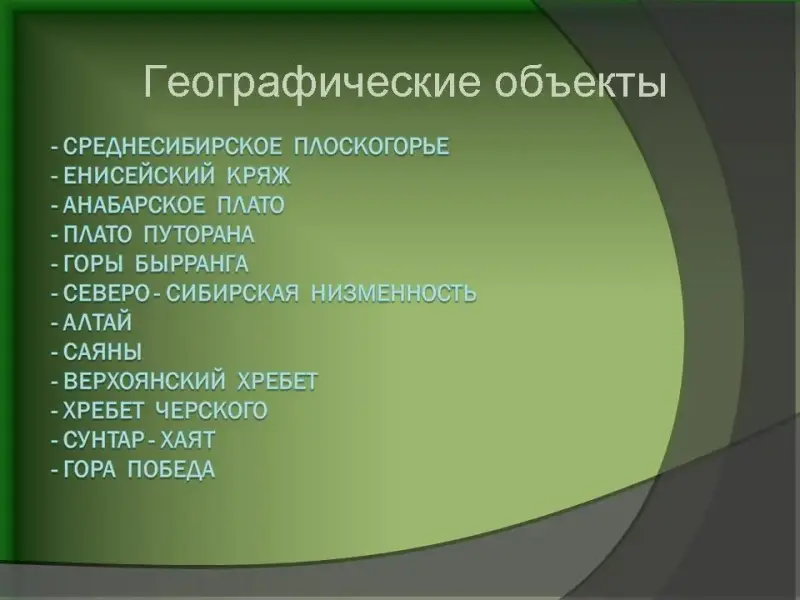- Какие особенности природы Восточной Сибири вы запомнили?