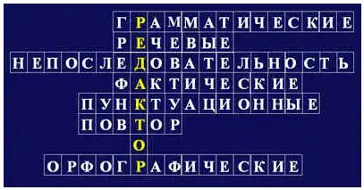 Мы сказали о том, что предложения в тексте должны располагаться в определенном порядке, чтобы не нарушалась логика высказывания. А какие еще нормы должны соблюдаться при построении текста? Сейчас мы вспомним виды ошибок, их условные обозначения и разгадаем кроссворд.
