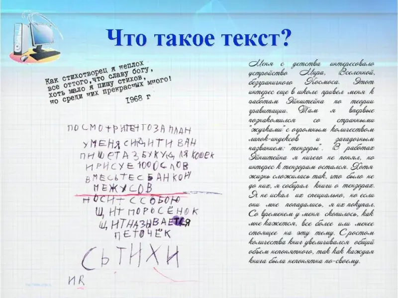 Давайте сравним рукописный текст и компьютерный. Вспомните, что вы делаете, когда пишите в своих тетрадях и допускаете ошибку?