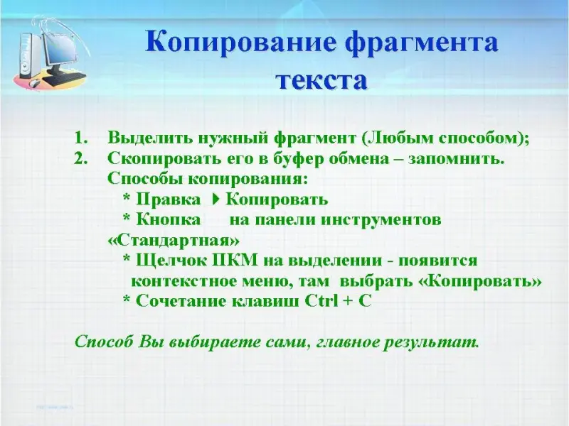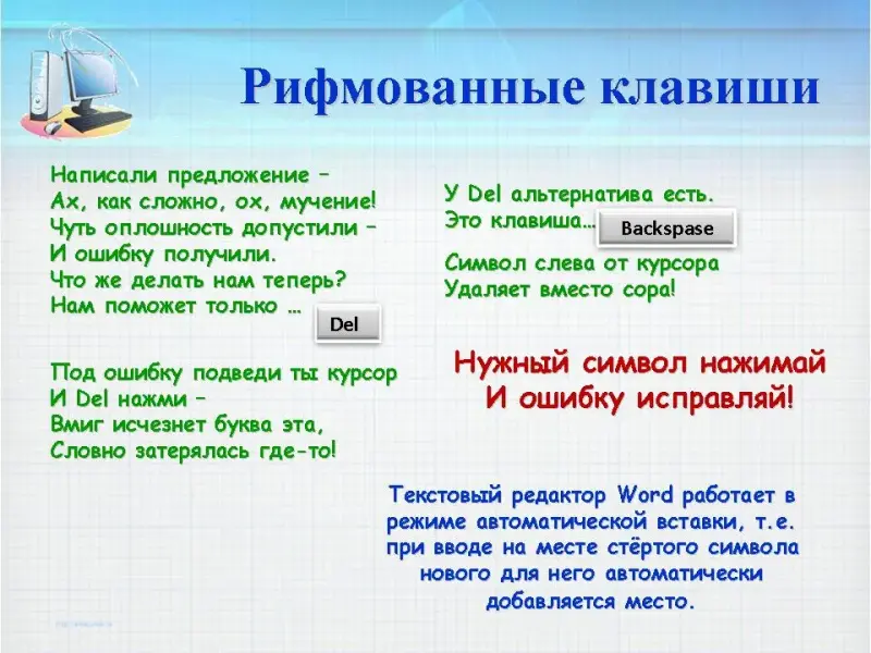 Но чтобы создавать компьютерные тексты, вы должны запомнить основные правила: