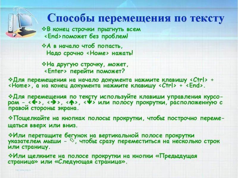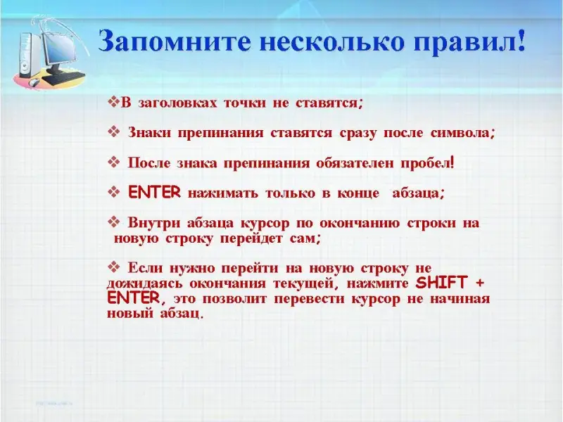 Правила набора текста на компьютере: