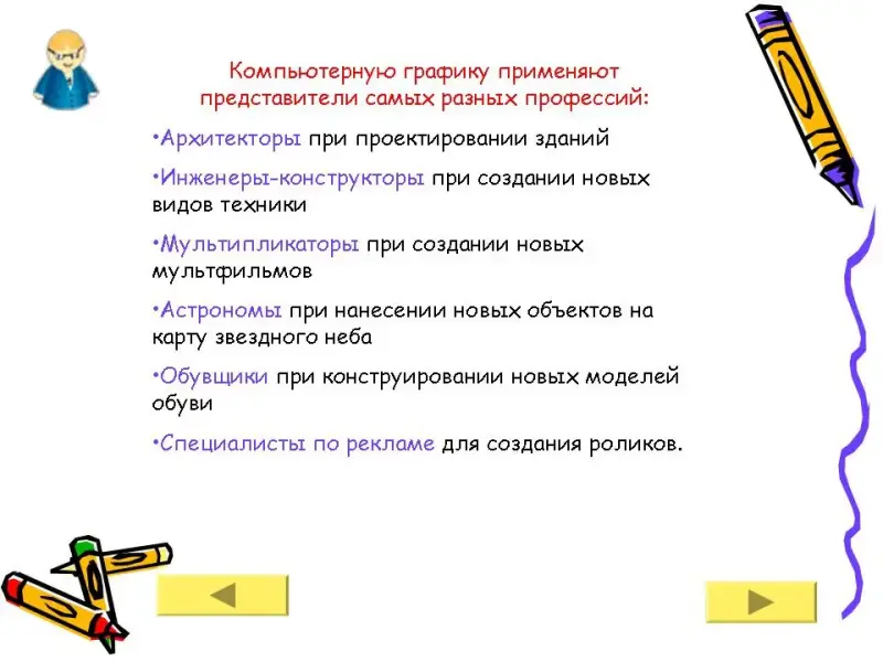 Компьютерную графику применяют представители самых разных профессий: (слайд №3, презентация к уроку).