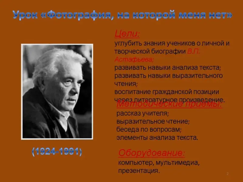 - углубление знаний учеников о личной и творческой биографии В.П. Астафьева;
