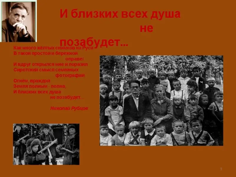 Благородный. Помнит добро, ценит любовь и заботу. Это совестливый человек, который не прощает себе прошлых ошибок. Ему дорога память о прошлом, об истории народа, которая складывается из памяти каждого человека. Виктор Астафьев и поэт Николай Рубцов поняли сокровенный смысл, заключающийся в каждой фотографии: "И близких всех душа не позабудет…"
