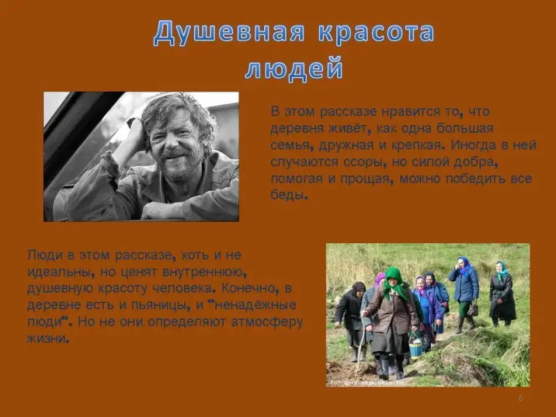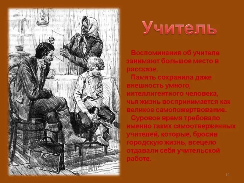Вывод: жизнь учителя и учительницы - своеобразный подвиг: приехали в глухую сибирскую деревню. Городские жители, молоды, ребёнок, нет условий, но они не сдаются.
