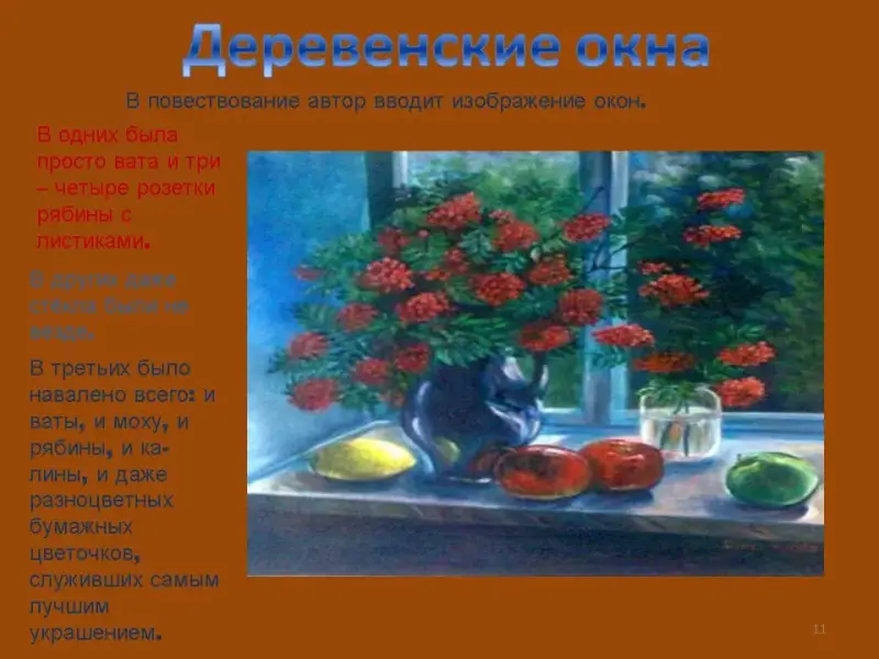 - окна в доме, стр. 226 от "Деревенское окно…" до "Бабушкины окна…";